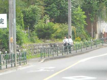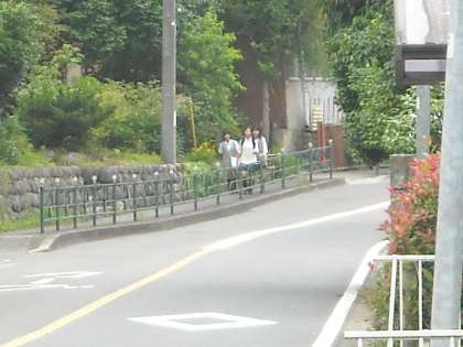 下からの徒歩の生徒は陣馬街道を直進して来る人も多いです。
