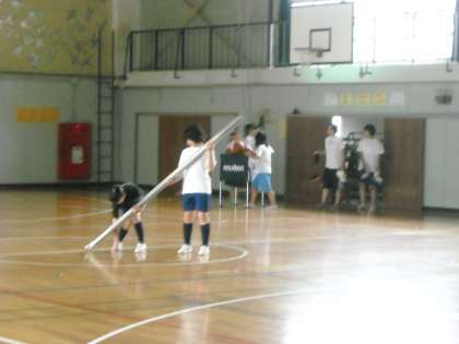 ポールを立ててネットを張ってとバレーボール部の練習は準備が大変です。