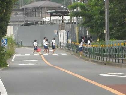 多目的広場の朝練を終えてソフトテニス部女子が元気に戻ってきました。