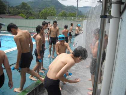 男子は水泳指導でしたが、行った時間が遅くシャワーを浴びて着替える直前でした。