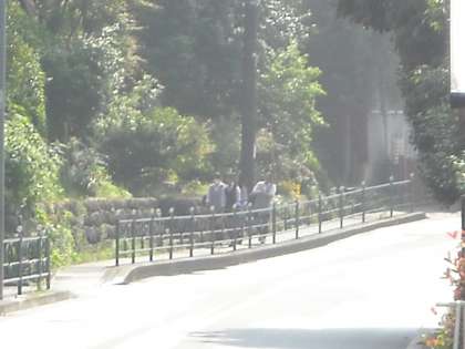 徒歩で陣馬街道を直進して来る生徒もたくさんいます。ガードレールがあるので安心です。