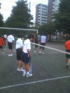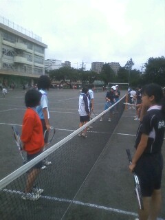 男女ソフトテニス部は調布六中に来ました。都大会前の大事な練習試合ですが、模試や英検の2次試験が重なって、男子が1名、女子は4名もレギュラー陣わ欠いています。男子は成蹊中と女子は府中五中との対戦です。