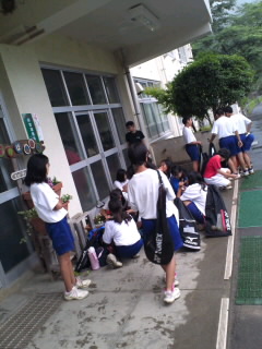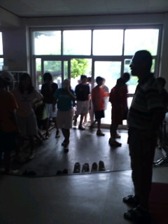 午前中の練習が終わって顧問の粕谷先生のお話がはじまるところでした。