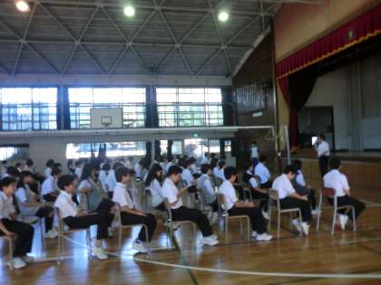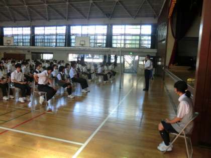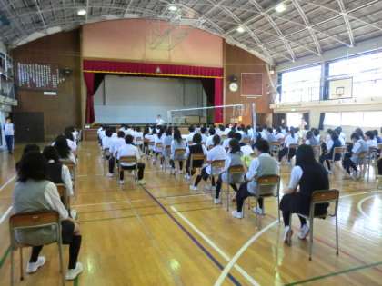1時間目に体育館で行われました。