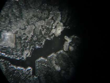 水酸化ナトリウム溶液に塩酸を混ぜ合わせた時にできる、塩化ナトリウム結晶の様子がよく観察できました。
