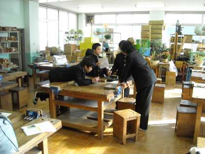 技術科も作品はたくさんあります。広い技術科室も部屋一杯になります。