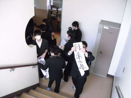 スペースの関係で、北校舎階段での展示となります。
