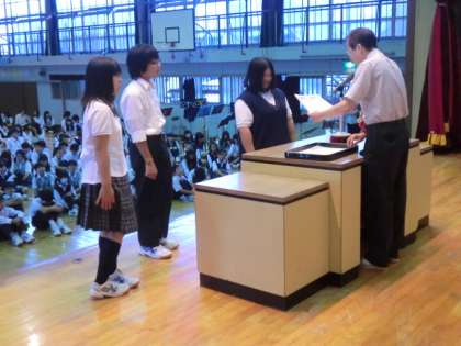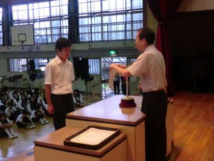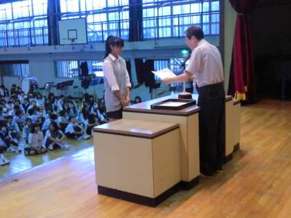 漢字検定満点賞の表彰に続いて、読書1万ページの表彰です。