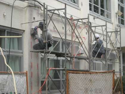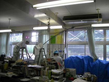 去年のエアコン・トイレにひき続き、今年は耐震工事です。夏休みに入って本格的に工事が始まりました。