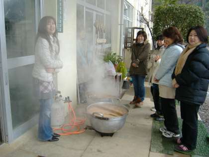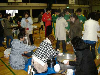 試合後は、保護者の方が協力して作っていただいた、豚汁をおいしくいただきました。