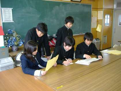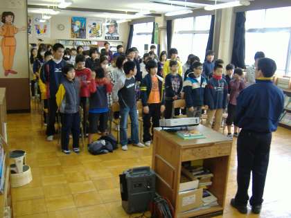 別室で事前の練習をした後、図書室に集まっていた6年生を前に説明開始です。