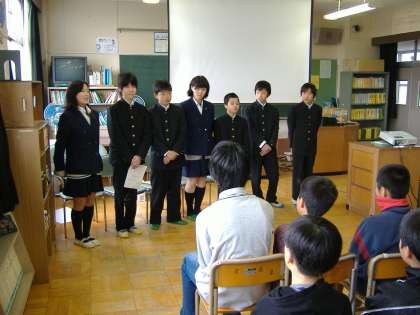 小中一貫教育のひとつとして、生徒会本部役員が各小学校に行き、元木小の6年生に中学校の説明会を行いました。