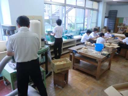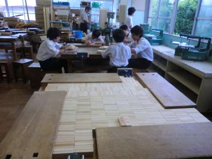 たくさんの木の小片を加工していました。