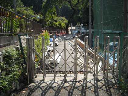 皎月院の入り口通路を広げる関係で現在、東門が通行できません。現在のなだらかな坂が短くなってやや急になるそうです。