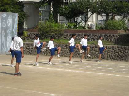 3年生の引退と夏休みでやや少ない人数ですが、揃ってウォーミングアップから練習を始めました。