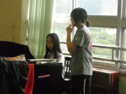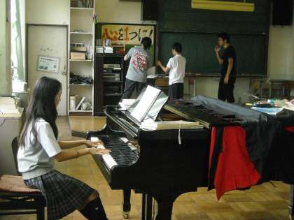 10月の合唱祭に向けて、指揮者と伴奏者がやってきて奥村先生から指導を受けています。