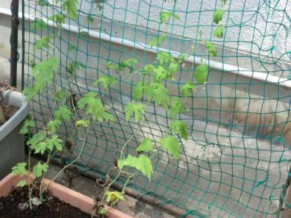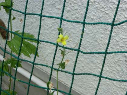 樋口先生が大切に育てているゴーヤのプランターに、小さな花が付いていました。