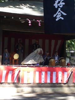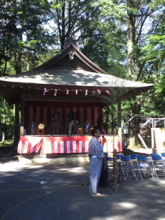 神主さんの祝詞(のりと)の後、舞台で神楽が披露されました。