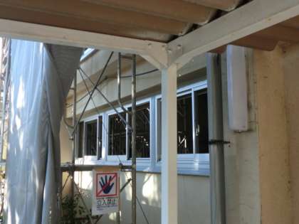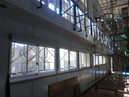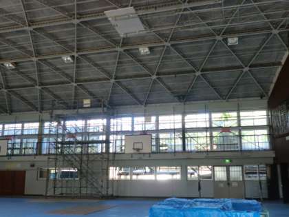 体育館の耐震工事に伴い、窓枠のサッシが新しくなりました。