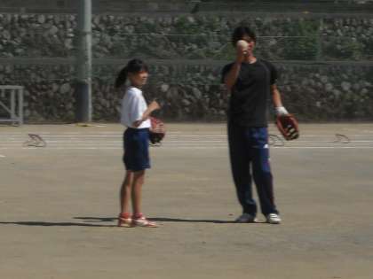 ソフトボール部には2名の外部指導員が来ています。生徒の技術力向上に大変ありがたいことです。