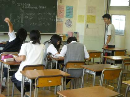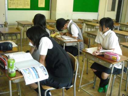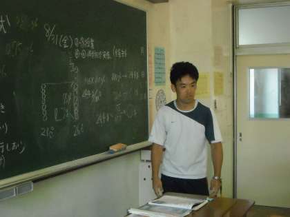 補習に来ていた3年生が理科の齋藤先生を捕まえて理科について臨時で質問教室を始めました。3年生は受け持っていない齋藤先生ですがスラスラと質問に応えていました。