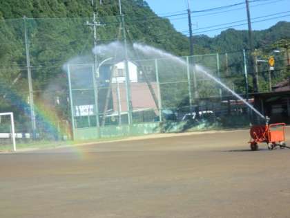 4時過ぎからグラウンド整備のための散水が始まりました。