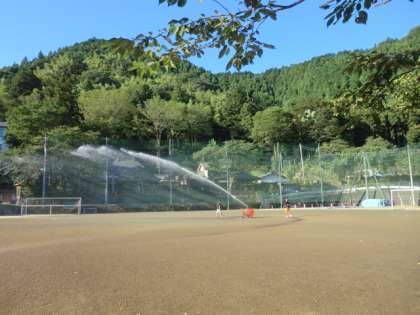 久しぶりの散水で、野球部の生徒も涼しさを感じたようです。