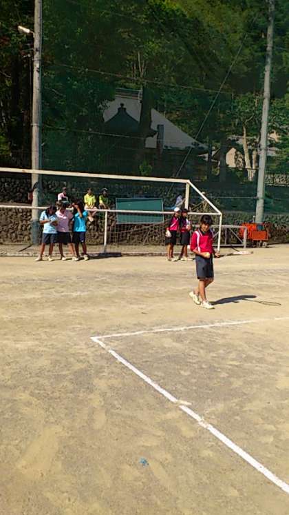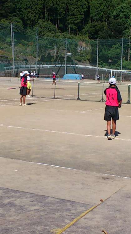 今日は恩方中学校で八王子市の夏休み1年生研修大会を開催しています。女子は3ペア中、2ペアが予選リーグを突破しました。