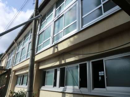 体育館の耐震とサッシの付け替え工事が終了したようです。
