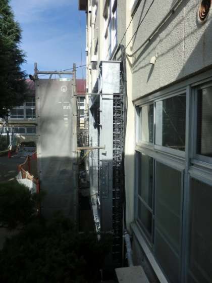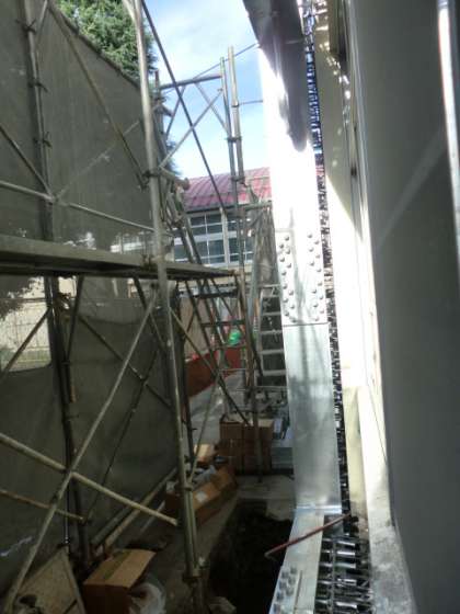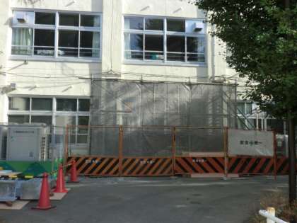耐震工事により、補強の支柱の取り付けが進んでいました。