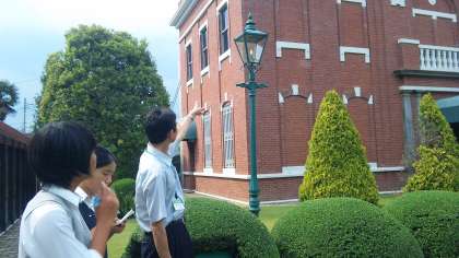 朝日新聞社から小平のがすミュージアムにきて取材中 館長さんと学芸員さんに詳しく説明いただいてます