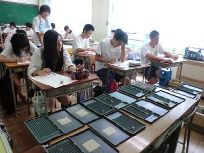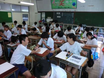 飯野先生の指導で、鉛筆で自分の手を描いていました。