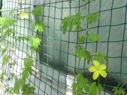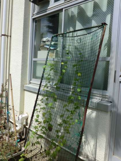 保健室のゴーヤの花が今日も咲いていました。