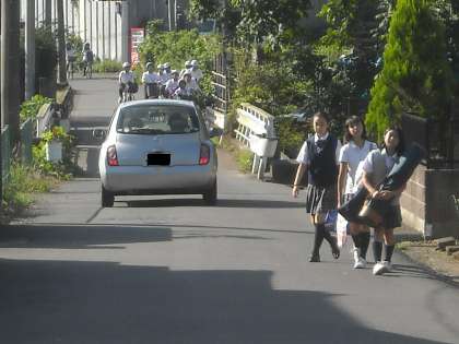 正門前の通りも意外と交通量が多いので気を付けましょう!
