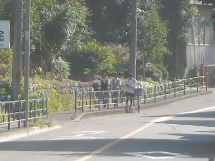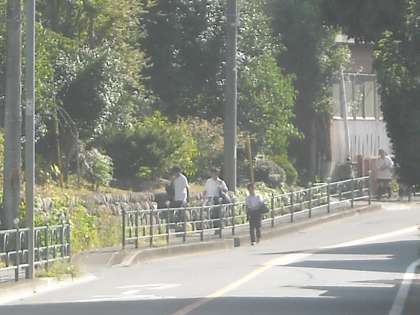 陣馬街道を歩いて直進して皎月院側から入る生徒も大勢います。