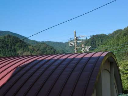 空気が澄んでいるため、体育館の屋根の向こうに見える高圧電線の鉄塔もはっきり見えました。