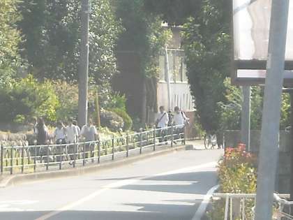 徒歩の生徒は陣馬街道を直進して皎月院側から登校して来る生徒も大勢います。