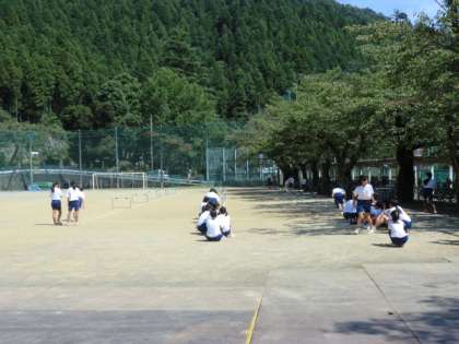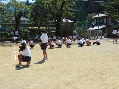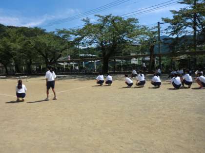 坂本先生の指導で、グラウンドでハードルの練習です。