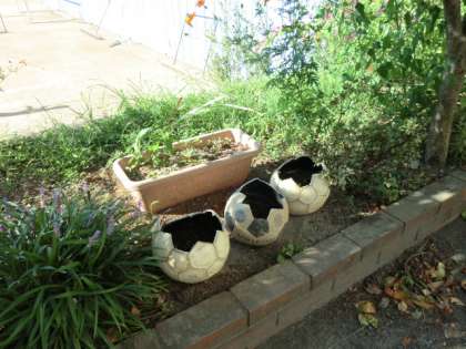 古いサッカーボールが、鉢植えにリサイクルされていました。