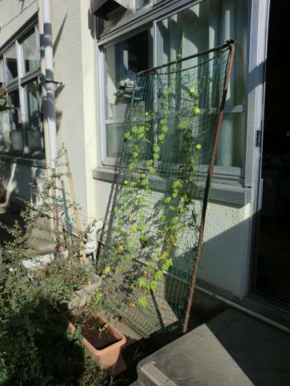 保健室前のゴーヤは、花が咲くだけのタイプのようです。