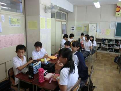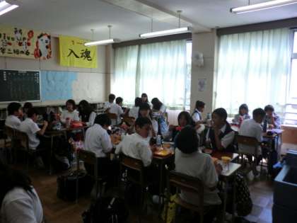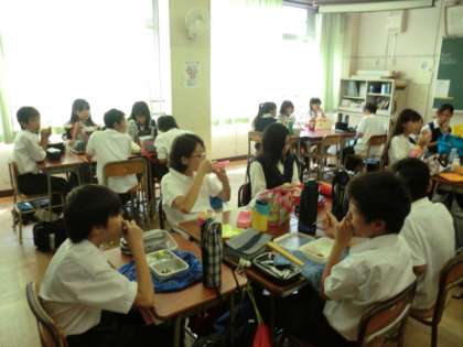 昼食時間もあと少しとなり、食べ終わる生徒もいました。