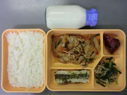 ごはん・スタミナ炒め・ちくわのマヨネーズ焼き