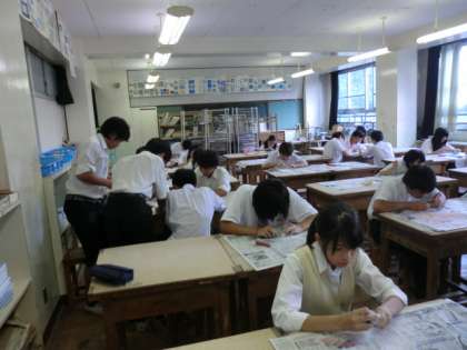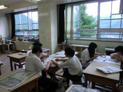 飯野先生の指導で、篆刻(てんこく)の制作です。