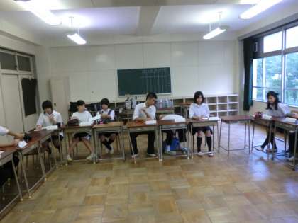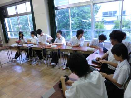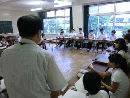 馬場先生の指導で、前期最後の中央委員会が視聴覚室で行われました。