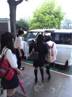 参加する吹奏楽部員は楽器を搬出した後、保護者の車に分乗して出発しました。