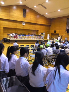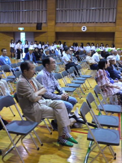 馬場先生も校長先生と一緒に客席から応援です。