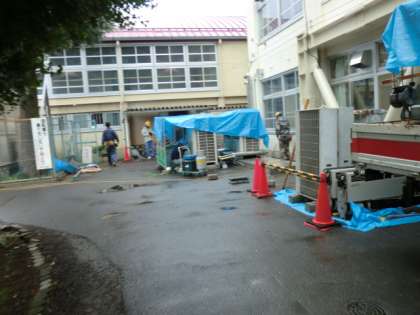 あいにくの雨になりましたが、エアコンの室外機の移設工事が進んでいました。