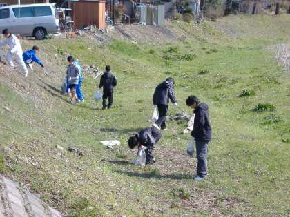 土手などにも、空き缶などの燃えないゴミが多く見られました。
