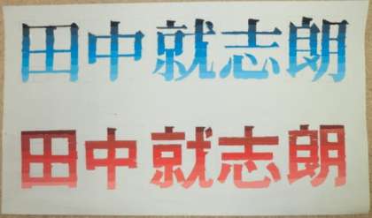 自分の名前を明朝体とゴシック体でレタリングし、色のグラデーションで着色して仕上げました