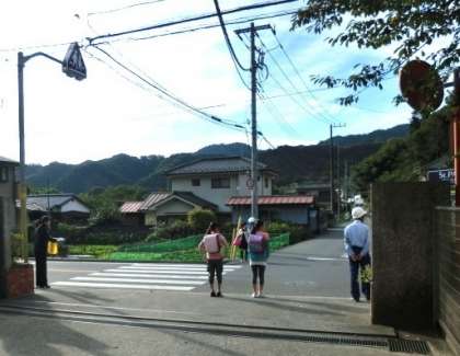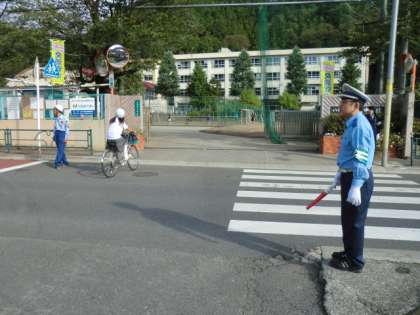 今日も安全協会の担当の方が、校門前で安全指導を行っていました。